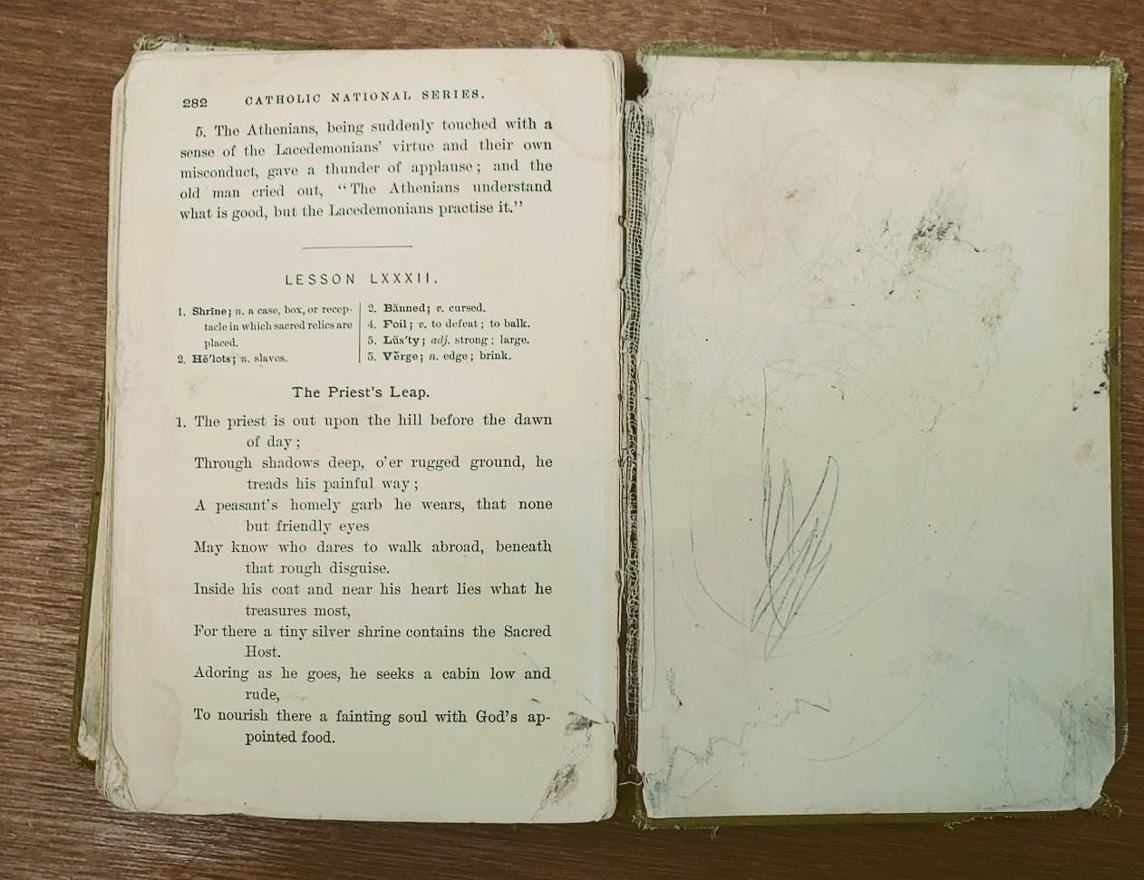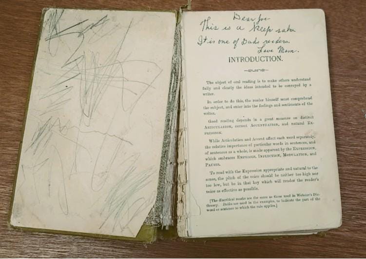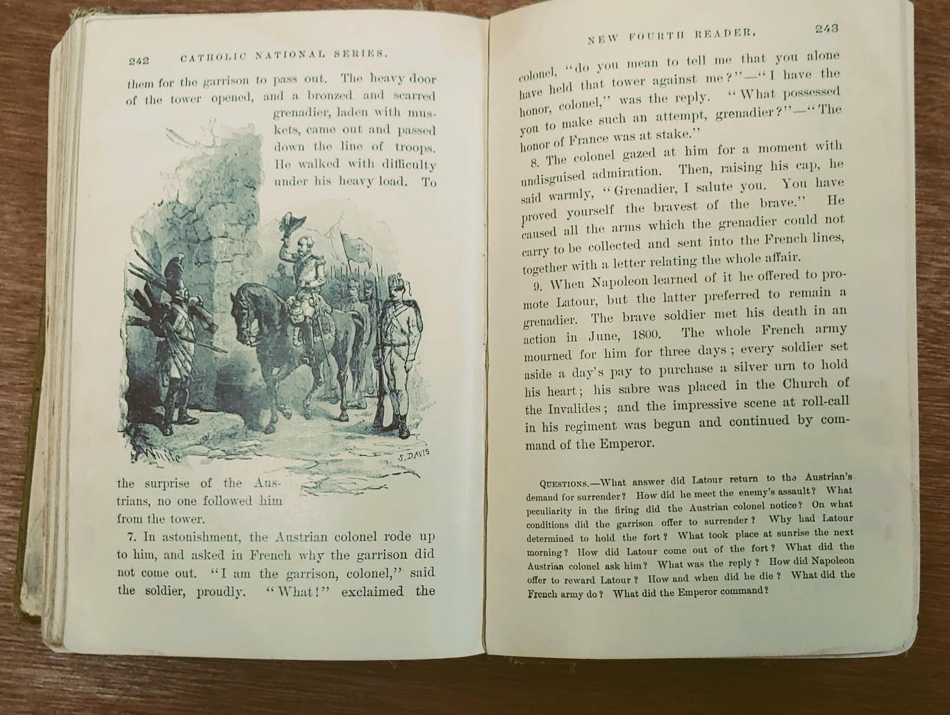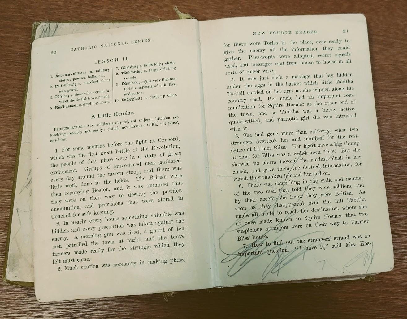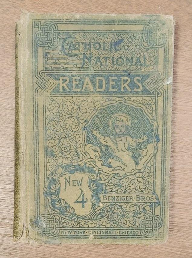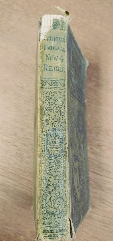 This is a Reader textbook from 1886. The condition is poor but I have always used this in displays over the years and it is perfect for an antique setting. The spine is separating as shown in photos and there is some scribbling and marks inside as would be expected for a book of this age. The cover is worn and damaged as shown but has a nice aged look. There are 282 pages and all seemed attached and holdin on! A great little book from the past. Please message if you have questions and thanks for looking!