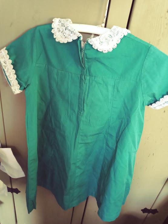 This is a sweet old homemade dress with vintage lace trim. The measurements 11" across shoulders, 23.5" from top of shoulder to bottom of hem and 15" across the bodice are close to girl's size 6. No stains and zipper works fine. Has been in storage for many years. Please message if you have questions and thanks for looking!
