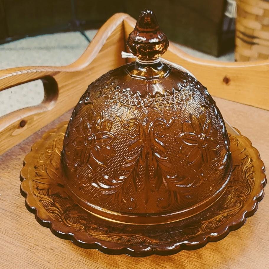 Round Covered Butter Dish by Tiara.Beautiful dish in good used condition. There my be roughness on some of the edges as seen in this type of glass. Please message if you have questions and thanks for looking!
