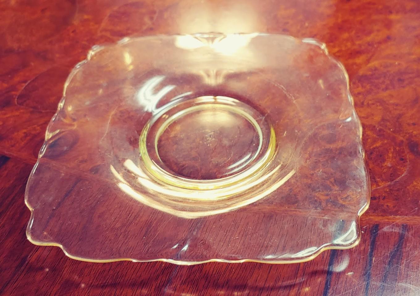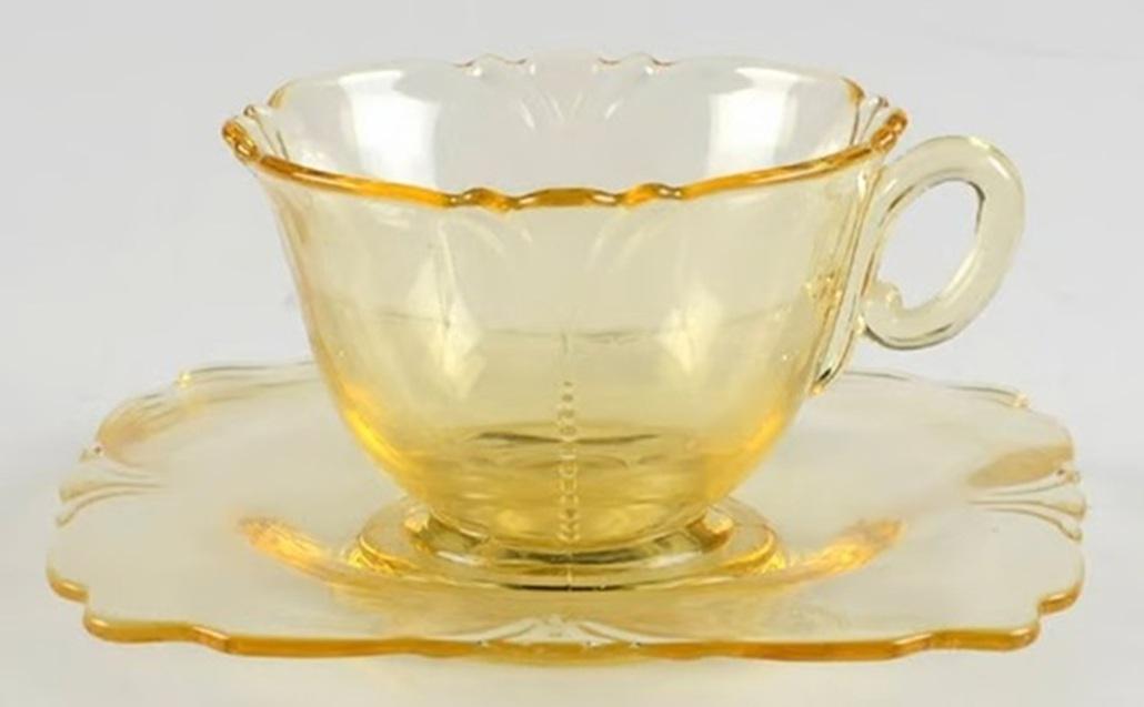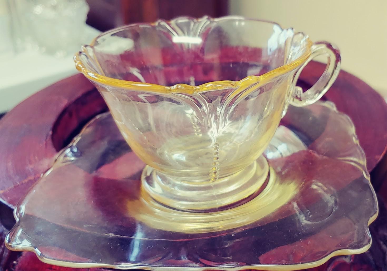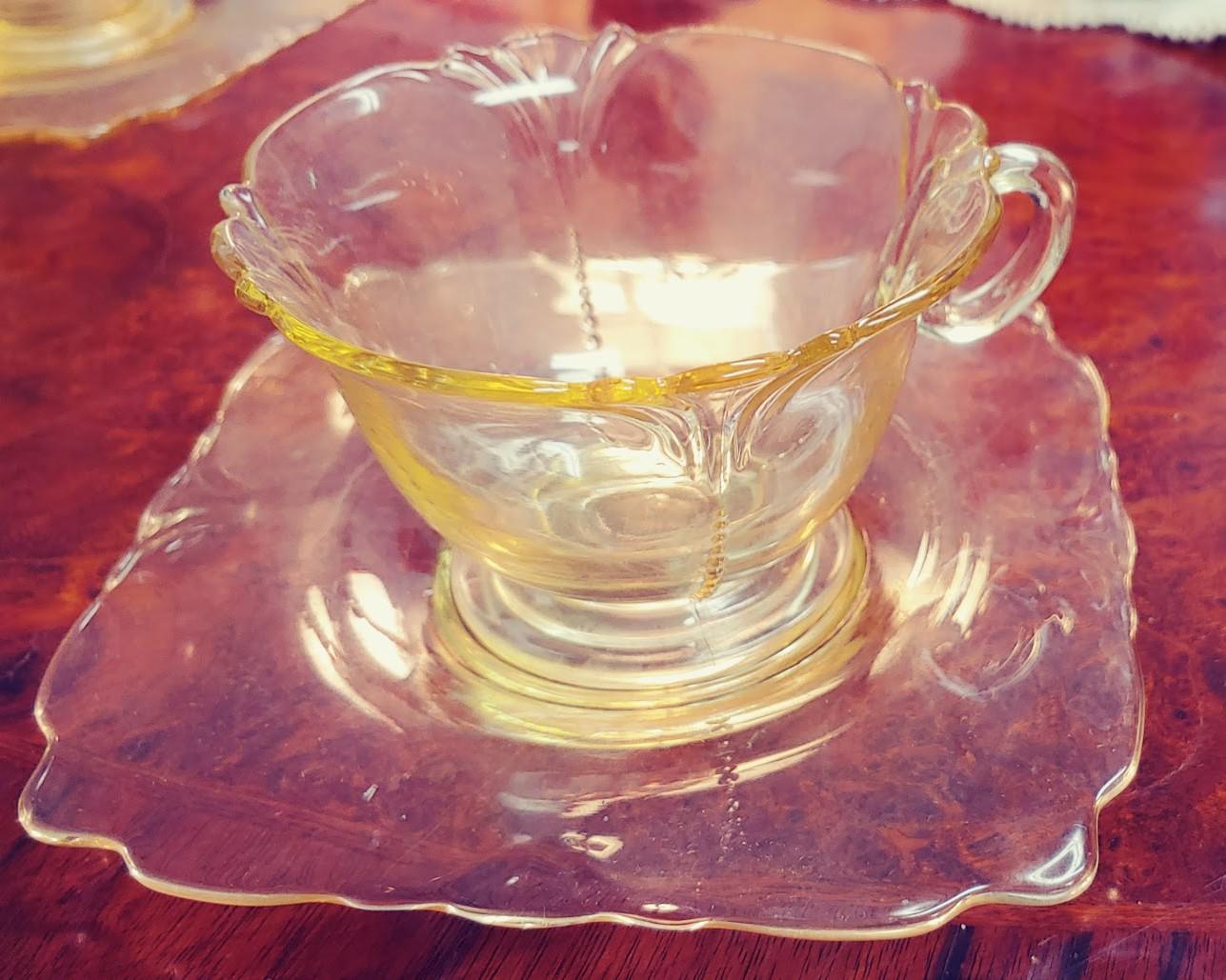 Beautiful Heisey Empress Sahara Yellow depression glass cup and square saucer