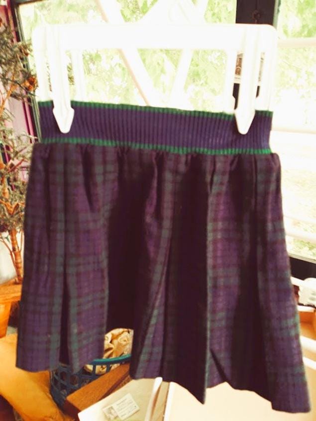 Sacony label inside but no size. Estimate to be a 3T. is a navy and green with black plaid this skirt measures 7" across the front of the stretchable waist, 10 3/4" from waist to hem. Please message if you have questions and thanks for looking!