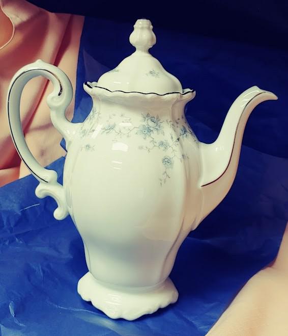Johann Haviland Bavaria, Germany coffee/beverage Server. Blue Garland Pattern (1974-1990). 8 1/2" tall without lid and 11 1/4" with lid. In very nice condition with a little wear to the silver trim around the upper rim. A beautiful piece of porcelain! Please message if you have questions and thanks for looking!