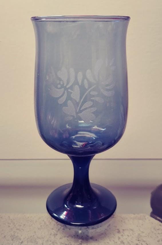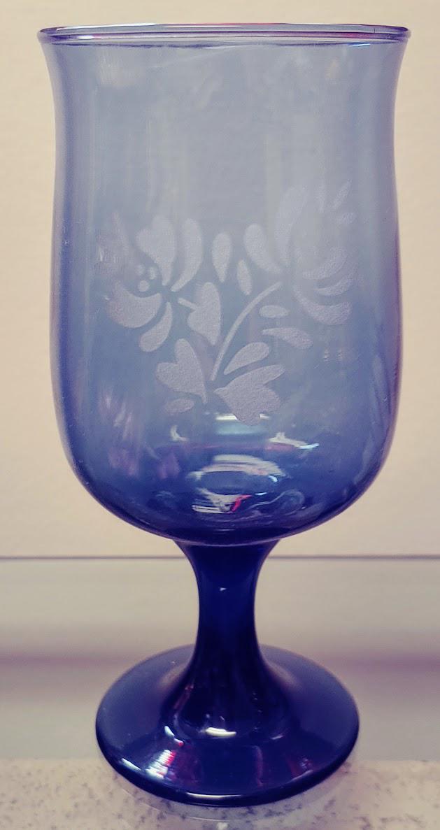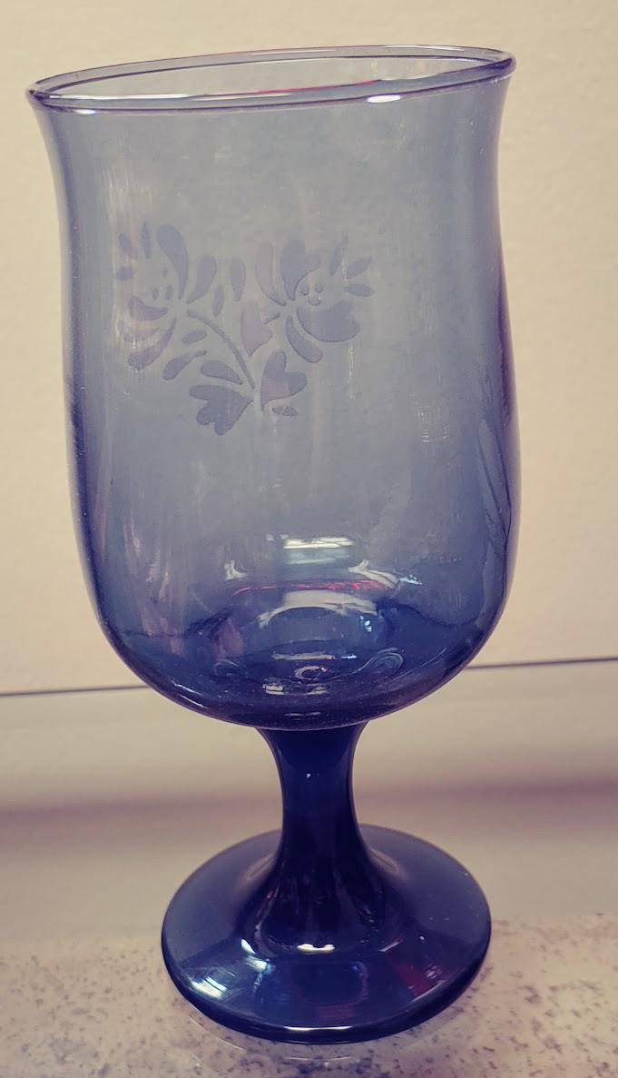Pfaltzgraff Yorktowne Blue with etched white frosted floral Glass Goblet